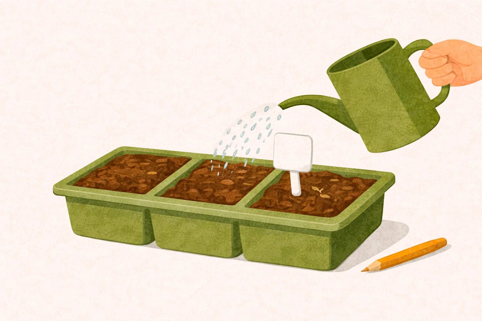 Hvor dypt frøet skal ligge, varierer med størrelse – små frø trenger bare et tynt dekke, større kan dekkes litt dypere.