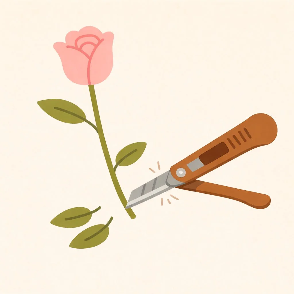 Rent og skarpt verktøy er viktig for å ikke skade stilkene, slik at blomstene holder seg friske lengre.
