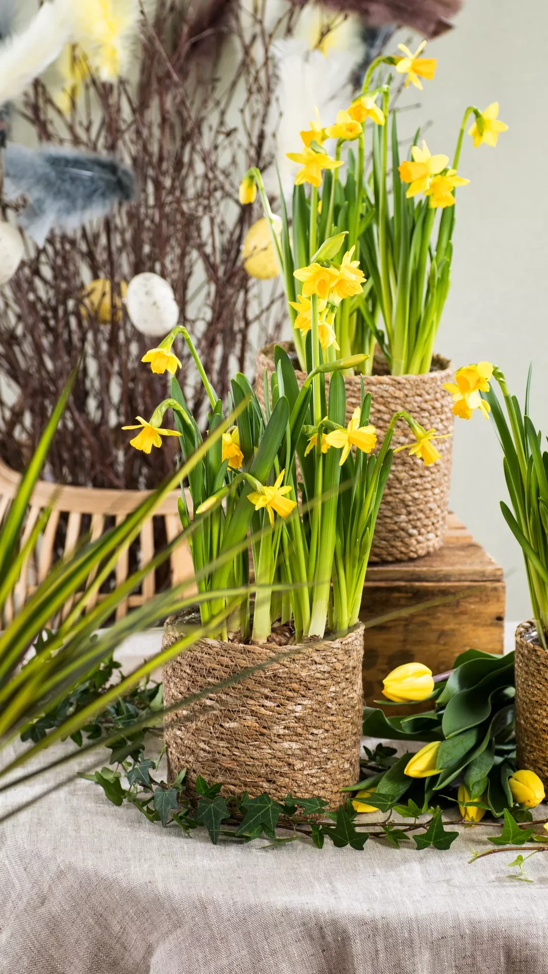 Du kan enkelt pynte med påskeliljer ved å: